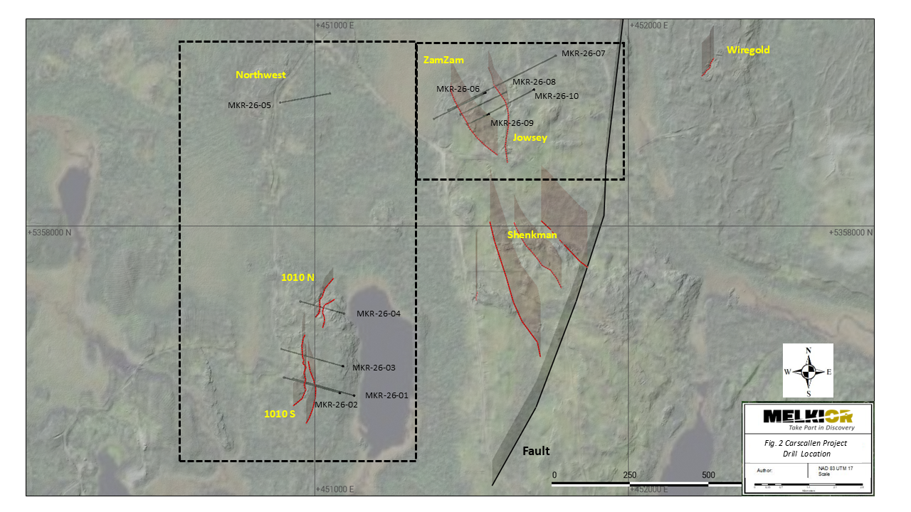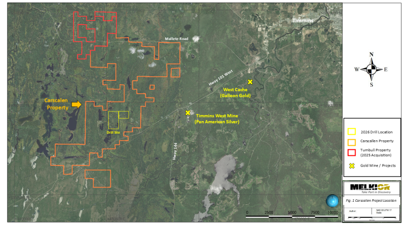April 24, 2026 – TheNewswire - Timmins, Ontario – Melkior Resources Inc. (“Melkior” or the “Company”) (TSXV: MKR) (OTC: MKRIF) is pleased to announce the commencement of the 10-Holes Drilling Program totalling over 3,000 meters at its 100%-owned Carscallen Gold Project approximately 25 kilometres west of the City of Timmins.