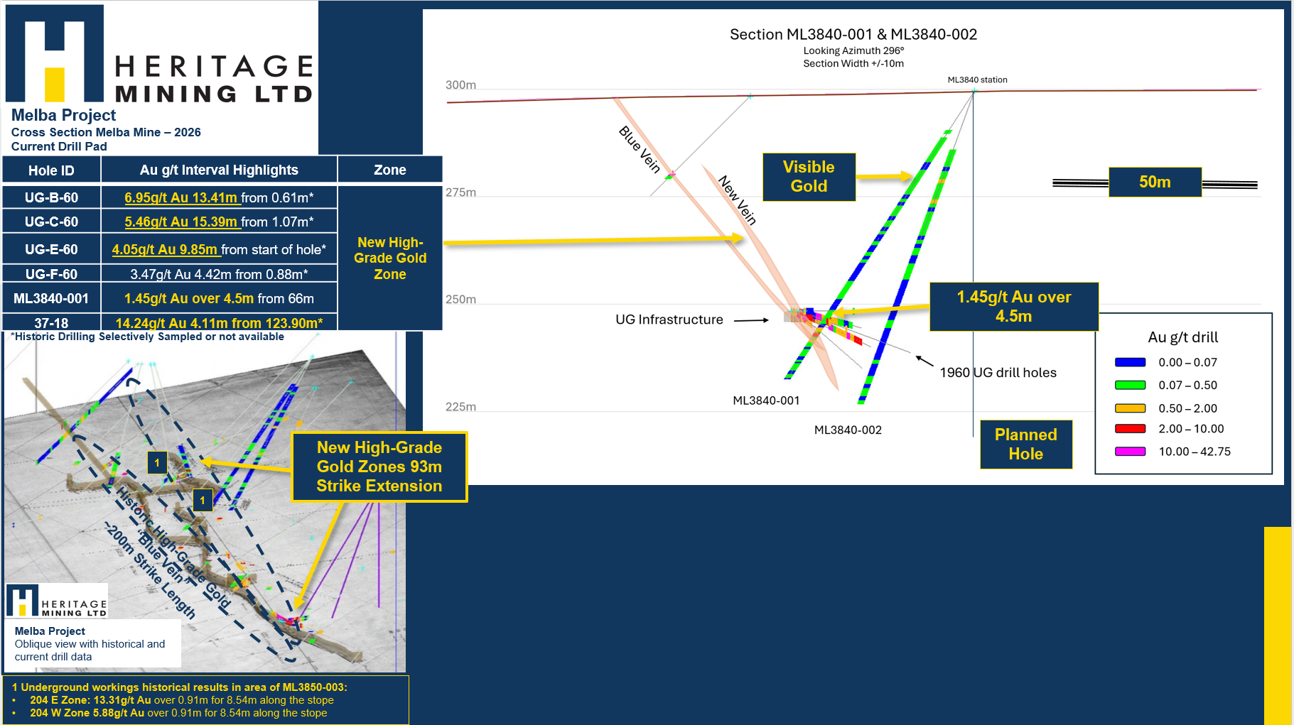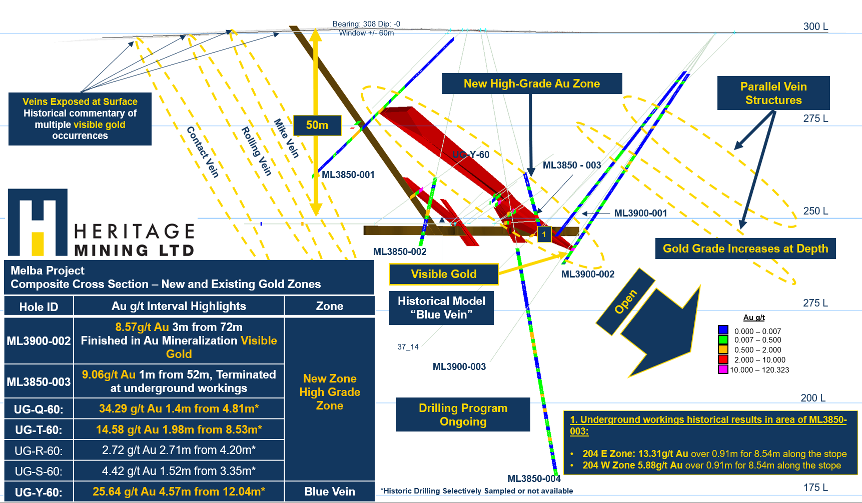 Heritage Widens New Gold Zone up to 8.57g/t Au over 3m and Extends Strike to ~93m at Melba